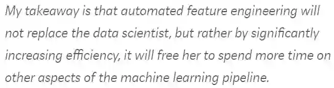 抛开以上这些项目,我相信自动化特征工程将会是机器学习工作流程中不可或缺的一部分。虽然该技术目前还不完美,但仍能显着地提高我们的工作效率。