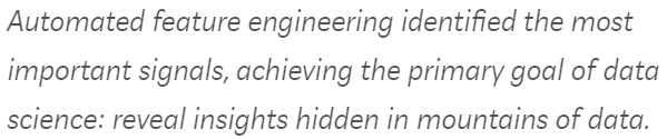 如果该工具已经能够自动创建一些有意义的特征而无需担心其有效性,那么我们为什么还要手动实现呢?此外,对于这个问题,自动化特征是完全清晰的,也能够向我们解释现实世界的推理过程。