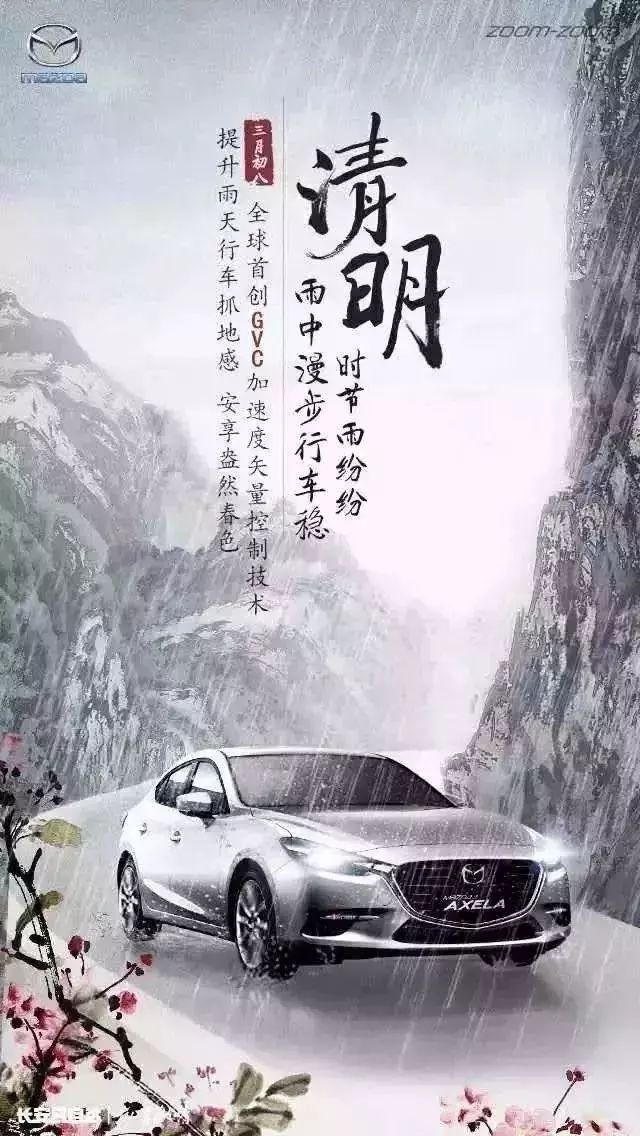 分析:采用化用+释义的方式,将“清明时节雨纷纷,路上行人欲断魂”化为“清明时节雨纷纷,雨中漫步行车稳”,将“清明时节雨纷纷”解释为雨中行车容易打滑不安全,与品牌特性(抓地技术)结合起来。