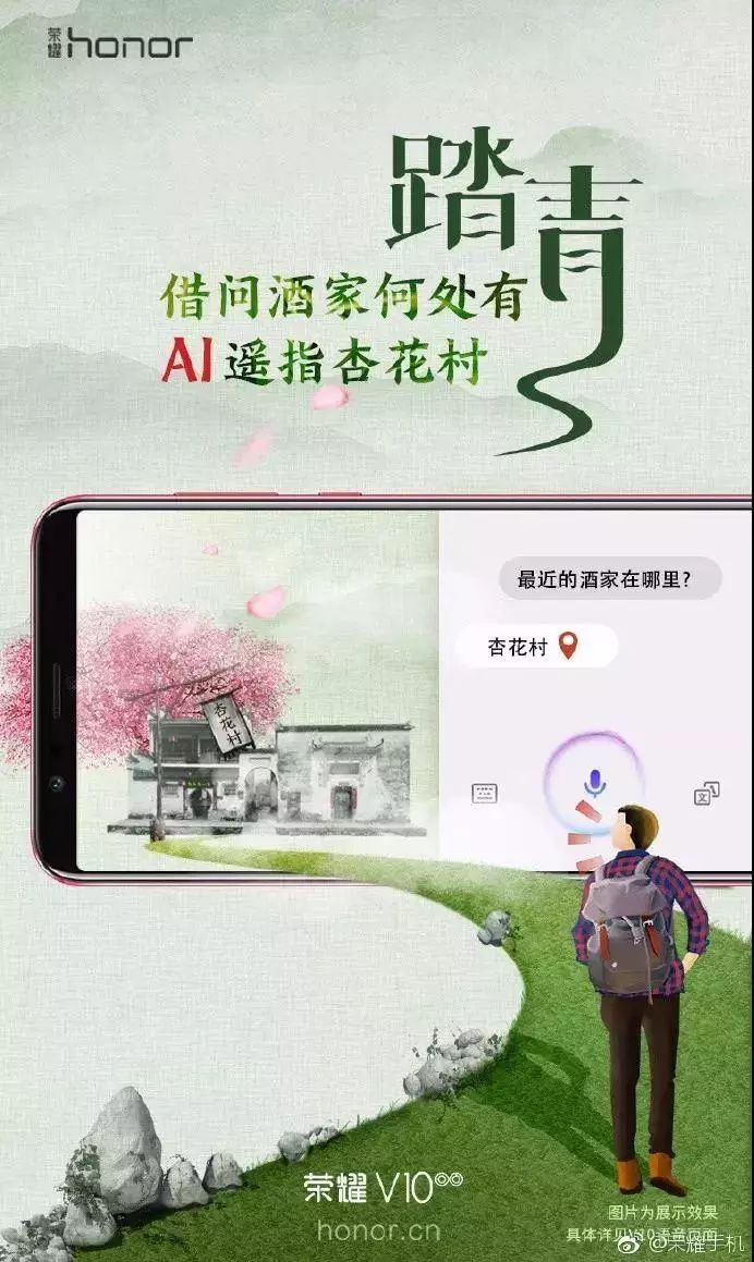 分析:采用化用+释义的方式,将“借问酒家何处有,牧童遥指杏花村”化为“借问酒家何处有,AI遥指杏花村”。强调了“借问”一词,解释为了行人踏青时问路需要导航,与品牌特性(问AI导航功能)结合起来,加上“遥指”一词生动地突显了导航的精准。