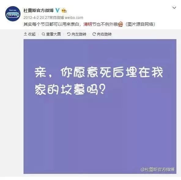 但是,在缅怀故人当天开这种玩笑,合适吗?如果是杜蕾斯的爱的情趣,那么大象就是开死人玩笑的低俗。