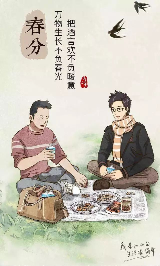 万物生长不负春光,把酒言欢不负暖意——选择了春分这个主题元素中特性最弱的“春光”,普适性很强。
