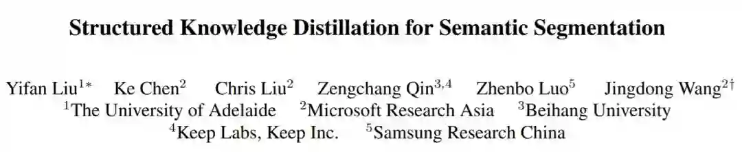 今天跟大家分享一篇关于语义分割的论文,刚刚上传到arXiv的CVPR 2019接收论文《Structured Knowledge Distillation for Semantic Segmentation》,通讯作者单位为微软亚洲研究院。
