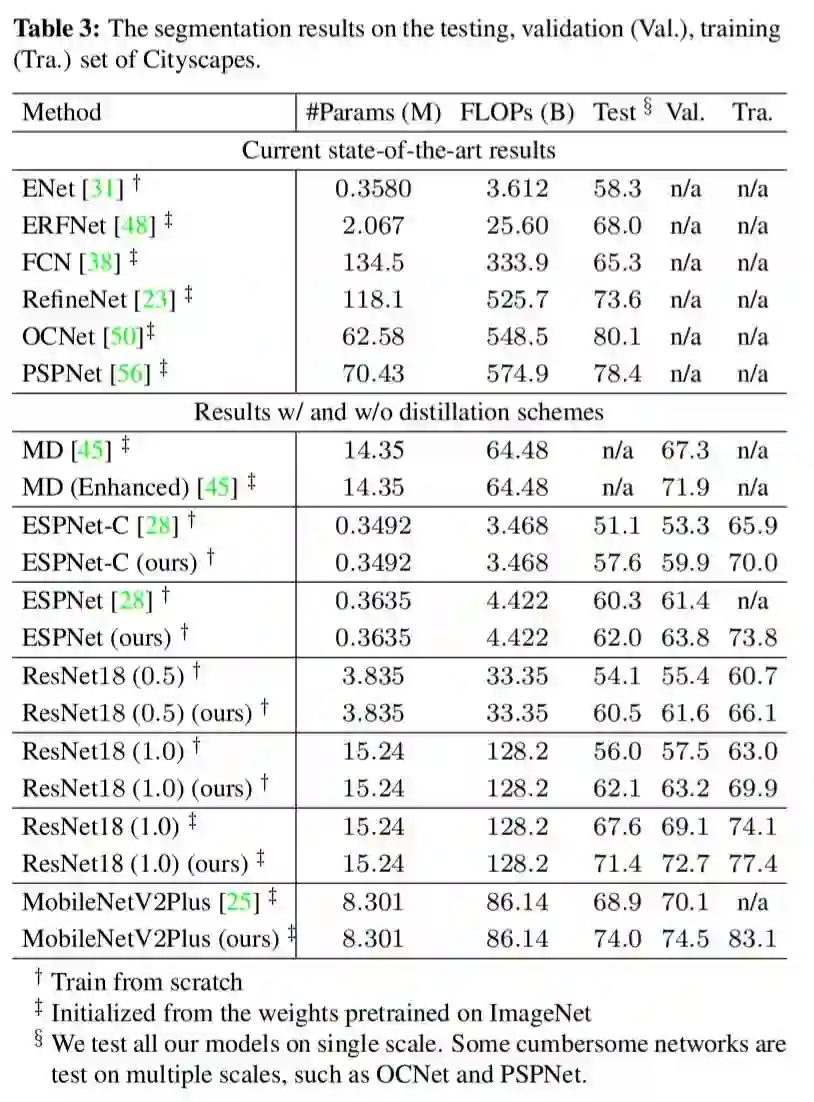 值得一提的是,该文很显然不仅对语义分割网络的知识蒸馏有借鉴意义,做深度估计、光流计算等像素级预测任务都值得参考。
