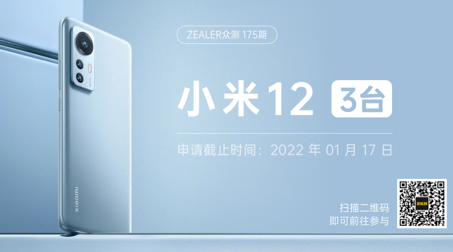 小米12 已上线 ZEALER 众测!对标 iPhone 13 的小屏旗舰,我们免费给你用!号称要拔掉 200 多万小米 6 钉子户,全新骁龙 8 Gen1+MIUI 13 加持,这回高端梦是否能成?答案等你揭晓!扫上方二维码或戳左下角「阅读原文」即可前往试用。