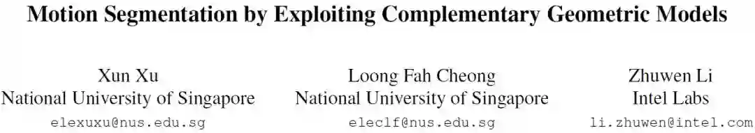 论文:Motion Segmentation by Exploiting Complementary Geometric Models(利用互补几何模型的运动分割)