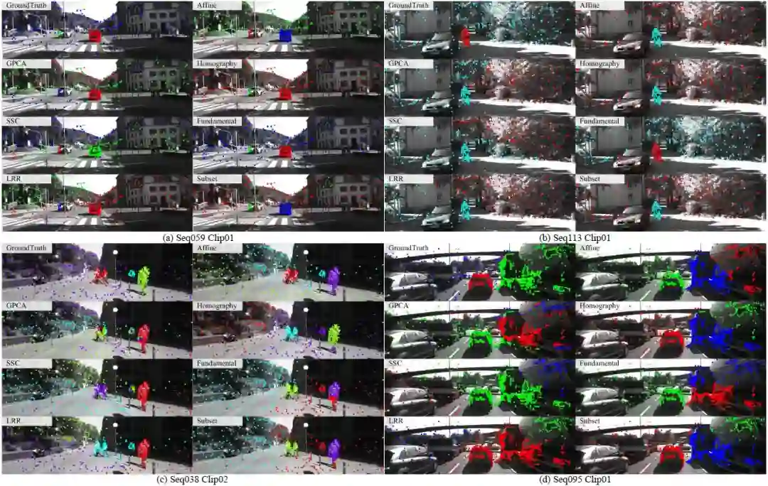 许多现实世界的场景不能简单地归类为普通的或者退化的,同时对场景的运动分割也不能简单地划分为基础矩阵方法和单应性矩阵方法。考虑到这些,新加坡国立大学提出了结合多种模型的多视角光谱聚类的框架。实验表明该框架获得最好的运动分割结果。此外,研究者还提出了一个改编自 KITTI 基准的数据集,它包括了许多传统数据集所没有的特征。