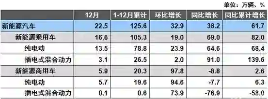 2018年12月新能源汽车销售情况