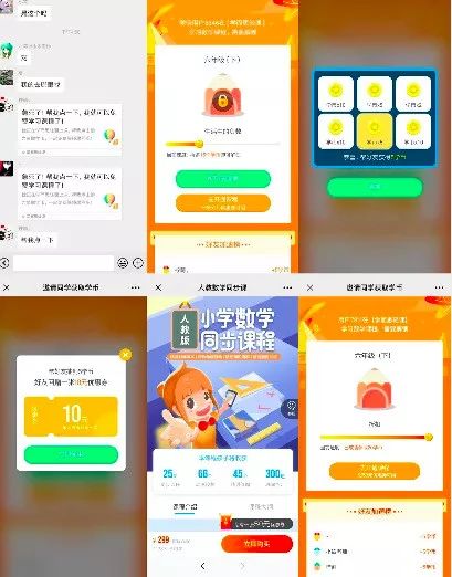 7. 解锁得金币:解锁得金币是新意比较大的玩法,用户邀请好友帮助获取免费课程,好友进入页面会看到帮助“加速”的提醒,点击后是抽奖的玩法,中奖后会直接回赠好友一定数额的优惠券,点击会进入购课页面,即实现拉新,又引导转化,一举两得。