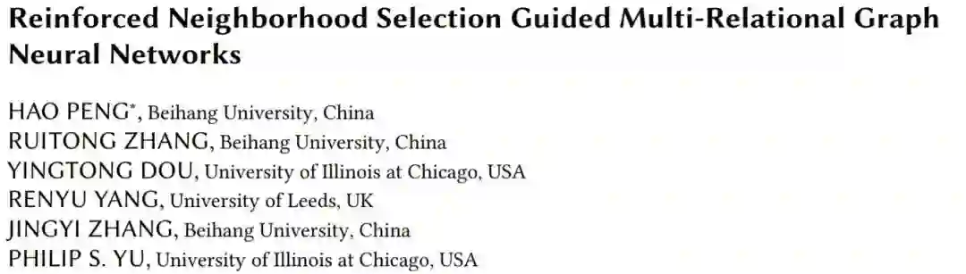 文章标题:Reinforced Neighborhood Selection Guided Multi-Relational Graph Neural Networks