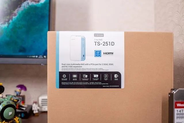 依旧是熟悉牛皮纸包装,包装上贴着产品图片。一起搭配的还有两块西数 14T 红盘作为存储。