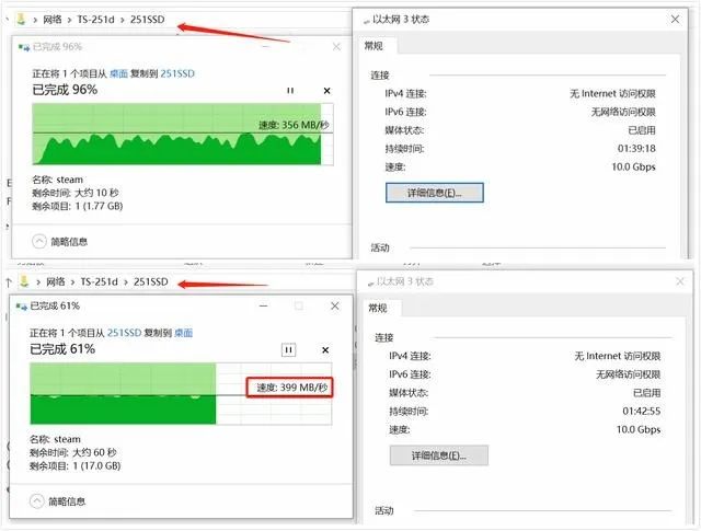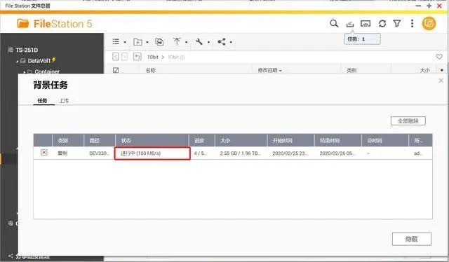 在千兆下通过文件拷贝测试读写速度与之前测试保持一致,读写都可以稳定在110MB/s。
