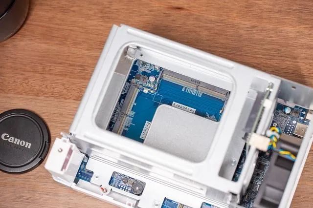 PCIe 接口在这个位置,用户可以方便更换像是 PCIe 万兆或者 M.2 SSD 扩展卡,或者QNAP 本身也有二者合二为一的设计。用户可选的还是非常多的!当然如果本身 251D 就可以多一个 M.2 SSD 插槽直接可以做缓存使用就更好了。