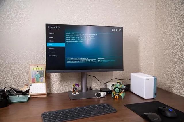这里我也选择搭配明基的 PD2720 测试一下 4K 输出能力。可以看到在 251D 接入显示器之后显示器就会显示 HybridDesk Station 的内容。另外如果作为影音播放器的话,我是推荐可以搭配 KODI 一起使用,对于播放高清电影来讲他的表现更值得期待。但是同时提醒各位,如果想实现更好的体验,加内存是必须的。