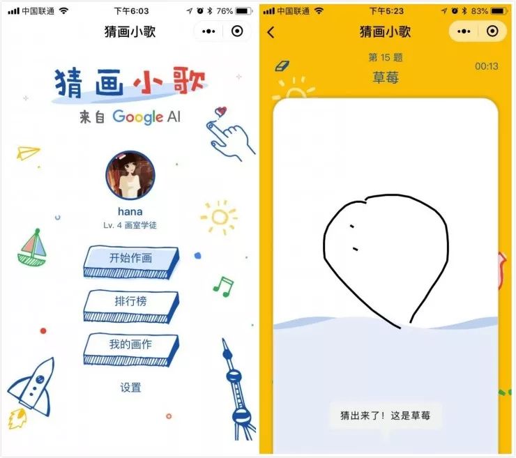 谷歌推出的微信小游戏猜画小歌