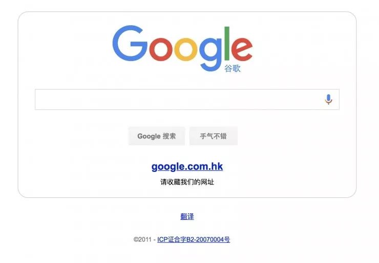 图为 google.cn,现在已经无法使用,点击会自动跳转到 google.com.hk