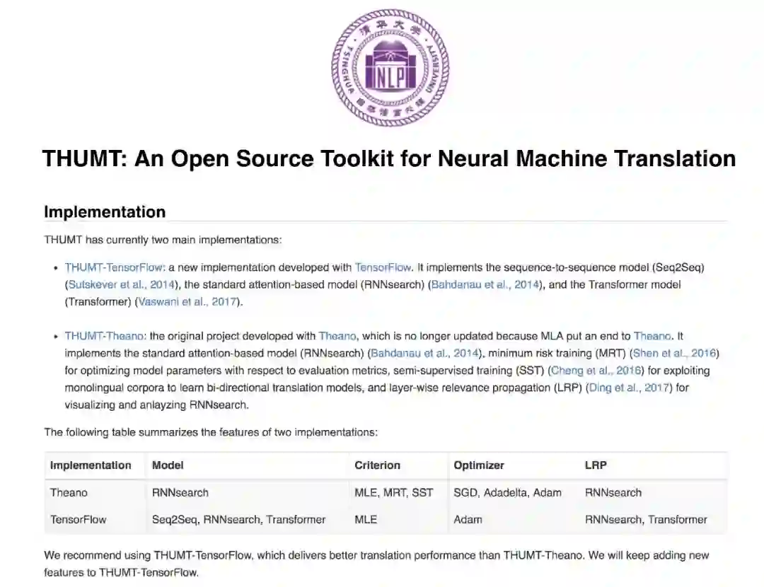 最后,刘洋老师给提供了针对神经机器翻译的开源工具包,有兴趣的读者可以访问下方链接进行实验: