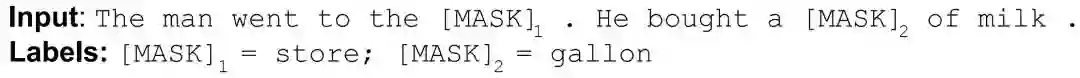为了解决这个问题,我们使用直接的蒙版技术来掩盖输入中的一些单词,然后模型就能同时根据上文和下文来预测被掩盖的单词。例如:
