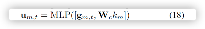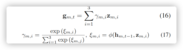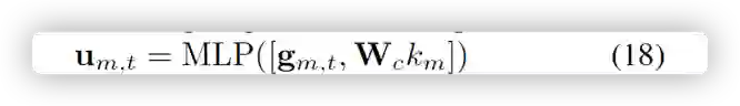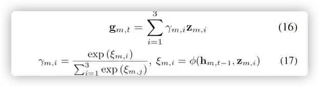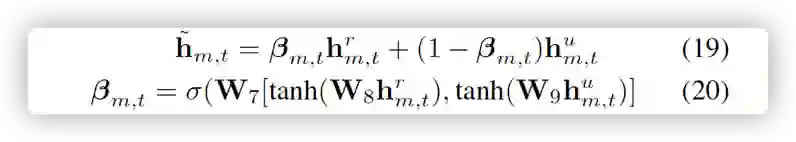 然后,为了基于先前生成的单词自动整合视觉线索向量 rm 和语义线索向量 um,t ,我们提出了一个引导单元(gate),通过深度整合视觉线索向量 rm 和语义向量 um 来生成故事。