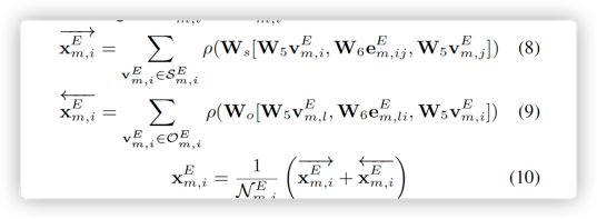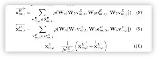 以上的三种图的推理方式都是一样的,以事件图上的推理为例。给定一个(vEm,i, eEm,ij , vEm,j )三元组,首先转换成对应的编码形式(vEm,i, eEm,ij , vEm,j ),应用GCN网络去整合邻居节点的信息,流程如下所示:
