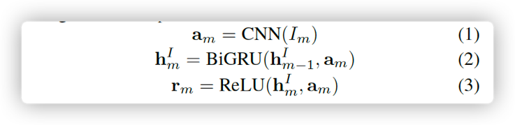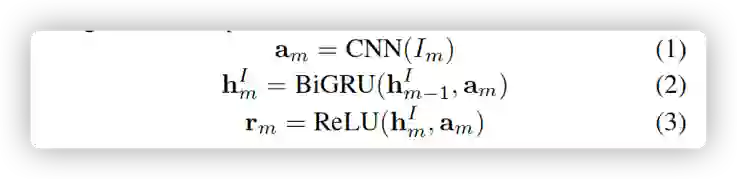首先使用预训练的resnet-152编码器,对输入的M个图像进行编码,然后使用Bi-GRU对M个图像编码再次编码得到输出,表达式如下。