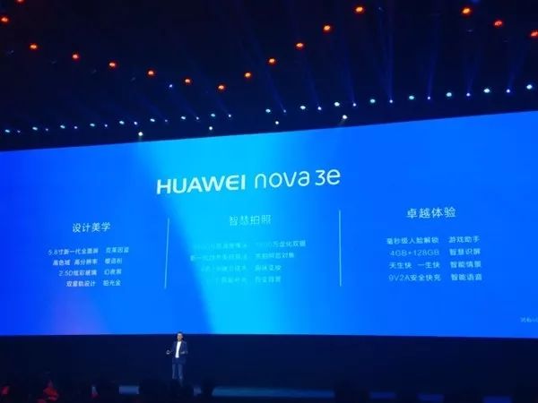 我们最后来看一下华为今天发布的新机:华为nova 3e。这也将是华为在国内发布的第一款“刘海屏”新机。