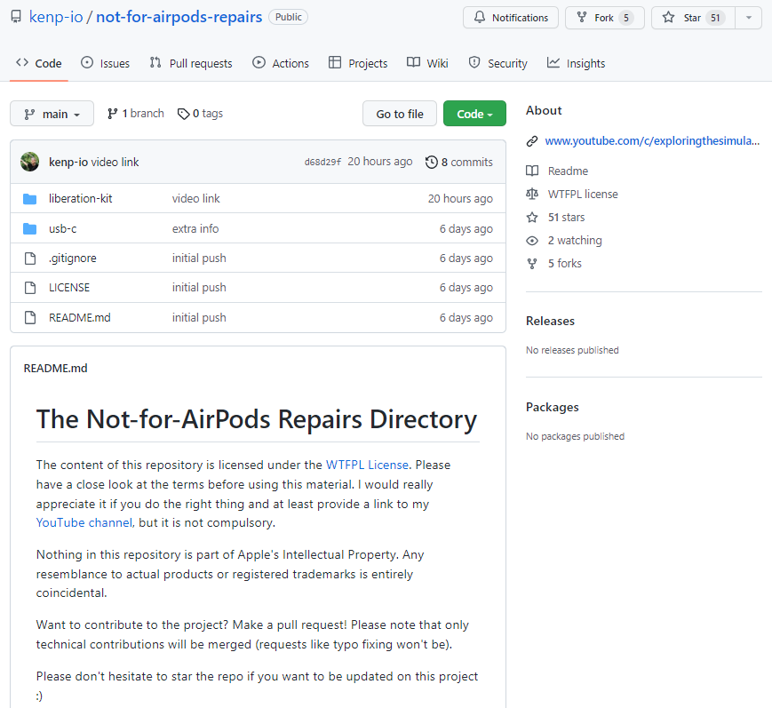 目前,Ken Pillonel已经把该项目的3D打印文件和PCB原理图公布在了GitHub(https://github.com/kenp-io/not-for-airpods-repairs)上,想要DIY并有一定条件的人可以亲自动手试一试。