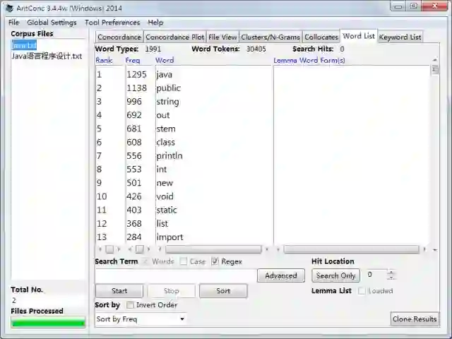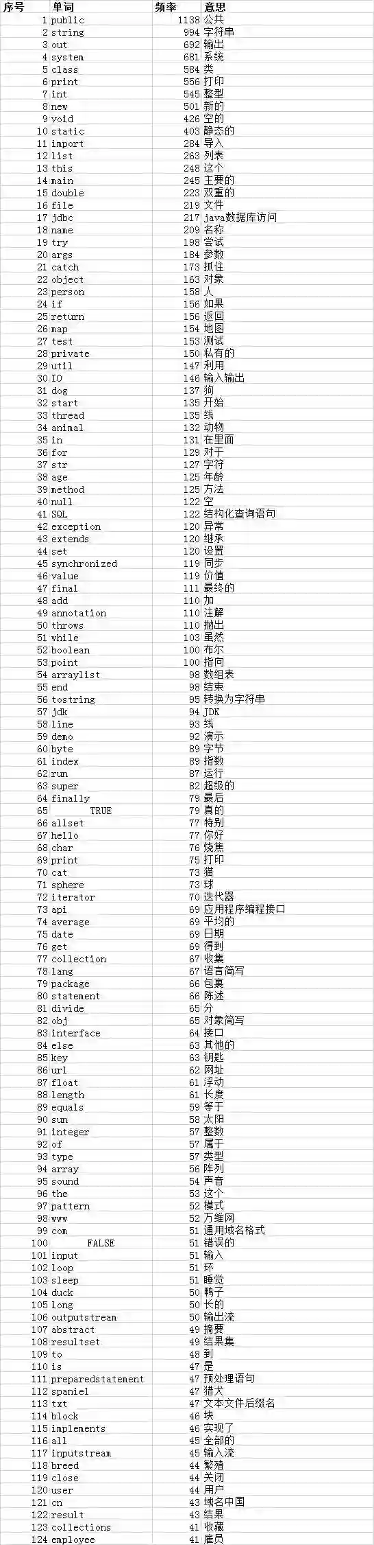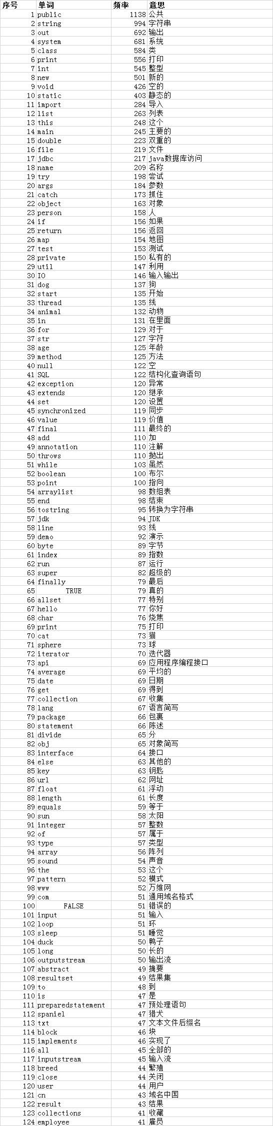 三、《Java语言程序设计》书中单词频率排行