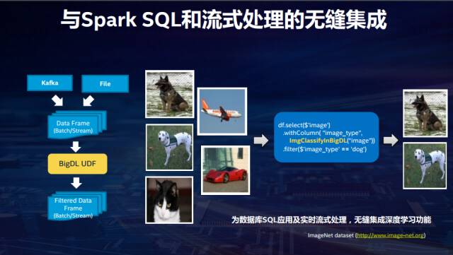 英特尔称,打造 BigDL 的主要心力是在 Spark 大数据平台上能够更快、更容易应用深度学习解决方案,不仅仅是止步于设计一个深度学习框架。基于 Spark 平台而建的好处,是 BigDL 可以与其他组件方便地交互。