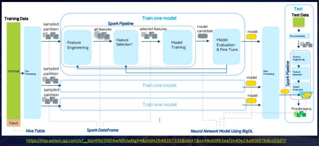 2015 年,中国银联电子商务与电子支付国家实验室联合英特尔开展了基于神经网络的线上欺诈交易侦测模型研究。基于 Spark 的 ML Pipeline 进行机器学习流程的构建,采用英特尔 BigDL 分布式深度学习库提供的神经网络算法进行模型的训练与测试。