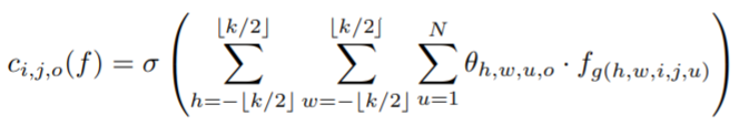 为了理解池化层和卷积层为什么有效,我们返回到公式里面 我们令 「f为特征图」,W, H, N分别是特征图的「宽,高,通道数」对于一般的池化窗口为K的p范数下采样,我们有而对于一般的卷积层,我们需要设定一个权重,进行相乘,并将多个通道结果进行相加。最后再通过激活函数进行激活,形式如下