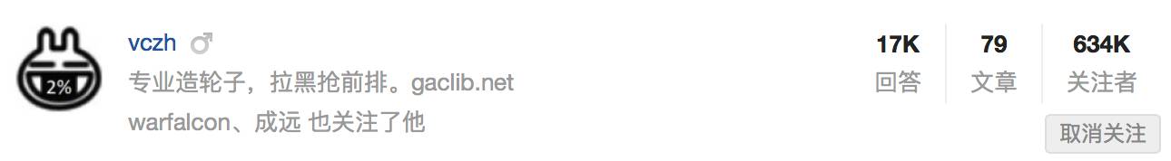 “轮子哥”,号称知乎三大程序员(与 @赵劼 @winter 并称“温赵轮”,概因其皆在微软工作,人称三大软狗。另据“路边社”报道,三人年薪皆过百万,于是另有号曰 “软狗三百万”。)江湖代号Vczh。本名陈梓瀚,因知乎的个人信息介绍上写有 “专业造轮子”,所以江湖人称 “轮子哥”。