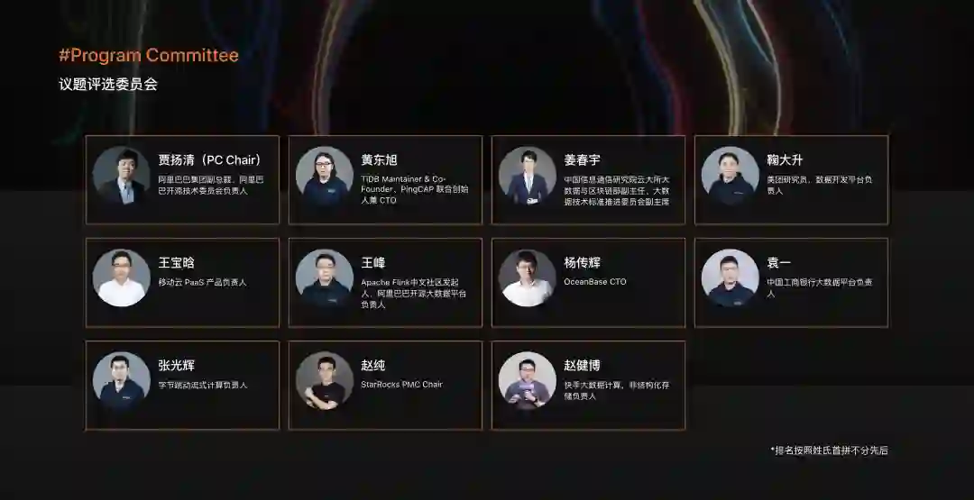 FFA 2022 邀请了 11 位行业领袖及开拓者组成议题评选委员会,并继续由阿里巴巴开源技术委员会负责人贾扬清担任主席,共同为大会内容护航,他们分别是: