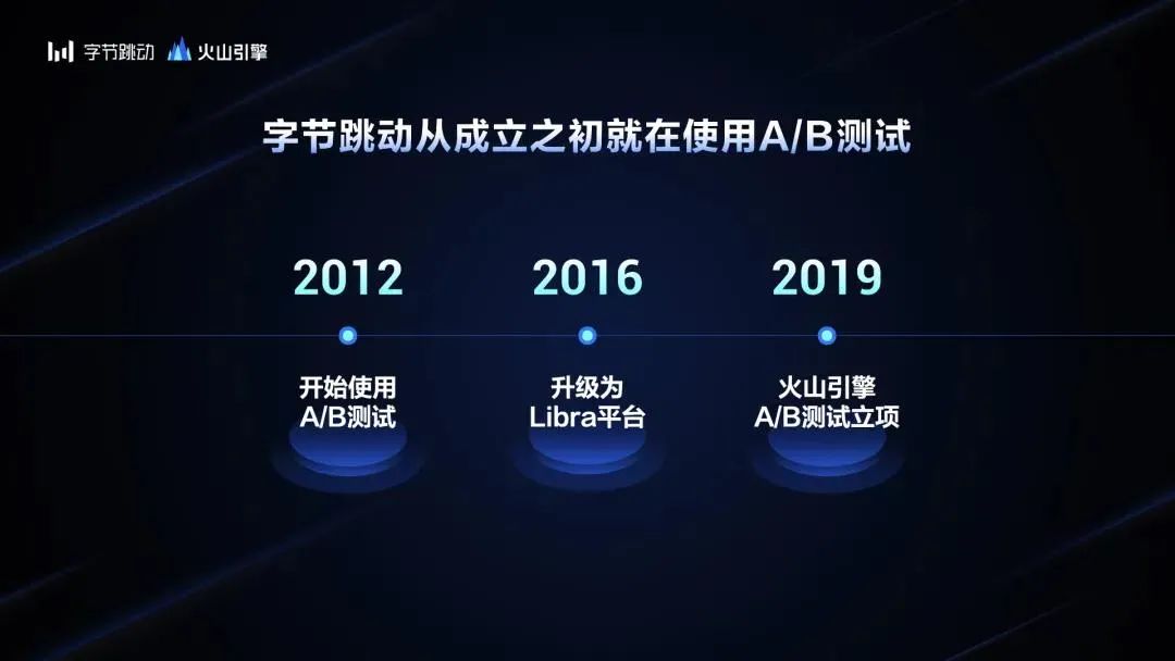 杨震原称,A/B 测试是字节跳动一项非常基础的工具,从公司成立之初就在使用,支撑了抖音、今日头条等产品的增长迭代。目前,字节跳动 A/B 测试每日新增 1500 + 实验,服务于 400 多项大大小小的业务,累计做了 70 多万次实验。这项工具已经实现产品化,通过火山引擎向企业客户开放。