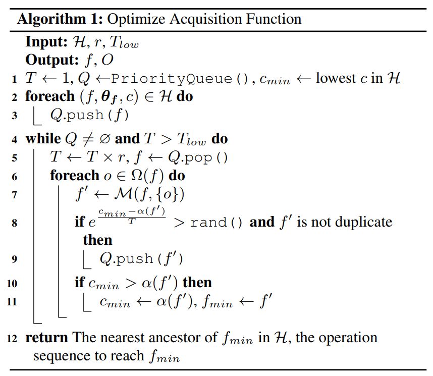我们需要解决的第二个问题是采集函数(acquisition function)最优化。在欧氏空间上定义了传统采集函数,其优化方法不适用于通过网络态射进行的树架构搜索。因此本文提出一种优化树架构空间采集函数的新方法。