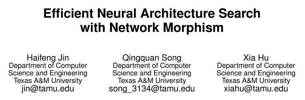 神经架构搜索(NAS)是自动机器学习中一种有效的计算工具,旨在为给定的学习任务搜索最佳的神经网络架构。然而,现有的 NAS 算法通常计算成本很高。另一方面,网络态射(network morphism)已经成功地应用于神经架构搜索。网络态射是一种改变神经网络架构但保留其功能的技术。因此,我们可以利用网络态射操作将训练好的神经网络改成新的体系架构,如,插入一层或添加一个残差连接。然后,只需再加几个 epoch 就可以进一步训练新架构以获得更好的性能。