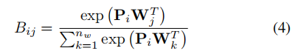 公式4中Pi是单词特征空间中关系ri的表示,与单词向量Wj的特征空间相同。由于Pi和Wj使用相同的特征,PiWTj是ri和Wj之间相似性的度量,它充当它们之间的权重。例如,我们可能期望关系ri=音乐组成员的向量Pi与关系Wj=乐器的向量Wj相似,因为音乐组和乐器的概念在语义上是相关的。