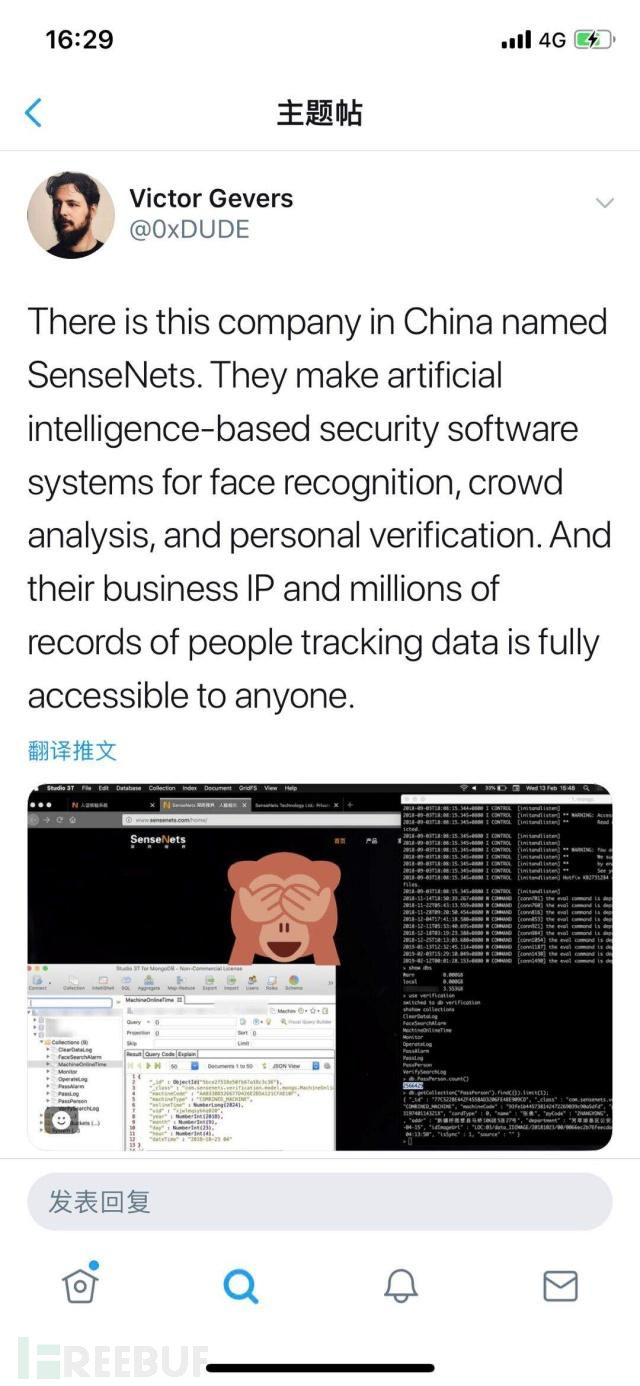 据澎湃新闻2月15日消息,2月13日,GDI基金会荷兰安全研究员Victor Gevers在推特上爆料,中国某公司发生大规模数据泄露事件。Gevers表示,该公司所掌握的数百万人的跟踪数据可供任何人访问,其中包含超过256万人的个人信息,例如身份证号码、身份证发行日期、性别、国家、住址、生日、照片、雇主和过去24小时内的位置,大约有668万条记录。Gevers称,该公司的数据库从2018年7月开始就处于任何人都可以访问的状态。