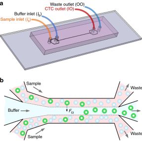近日,来自伊利诺伊大学芝加哥分校(UIC)和澳大利亚昆士兰科技大学的研究小组开发了一种新型的多流微流体(MFM)系统,其可分离高纯度的循环肿瘤细胞。这一系统内的微通道利用细胞的惯性迁移。细胞的侧向迁移在很大程度上取决于这一系统内微通道中细胞的大小。由于其利用的是循环肿瘤细胞的物理特性,因此无需利用亲和力和其他黏附活性手段来进行繁琐复杂的分离工作。这一系统最大的特点是实现了对来自白细胞的循环肿瘤细胞进行了无标记分离。
