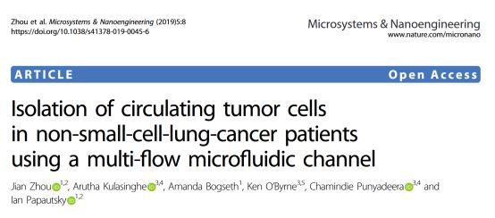KenO’Byrne, Chamindie Punyadeera, Ian Papautsky. Isolation of circulating tumor cellsin non-small-cell-lung-cancer patientsusing a multi-flow microfluidic channel