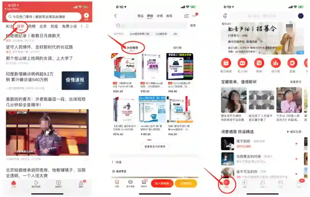 哪里有海量信息,哪里就有推荐系统,我们每天最常用的APP都涉及到推荐功能: