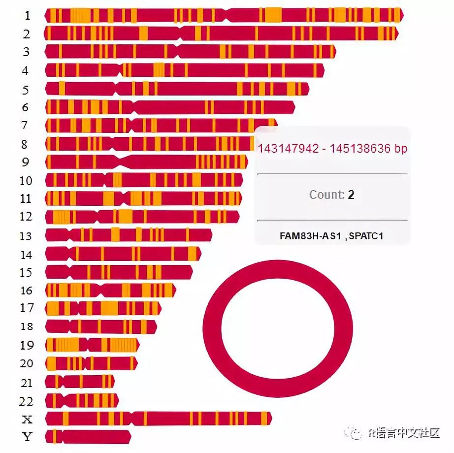 2. chromoMap: 提供人类染色体的交互式图形可视化,允许用户将染色体元素(如基因,SNPs等)映射到染色体图上,并引入“染色体热图”.