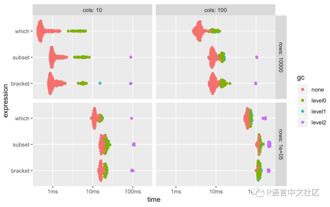 1. bench: 针对R表达式,提供基准测试和分析执行时间的工具.