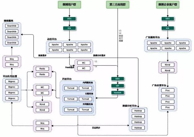 这里以微博平台的业务为例,微博平台的服务部署架构如图6。