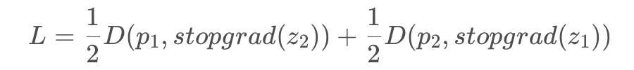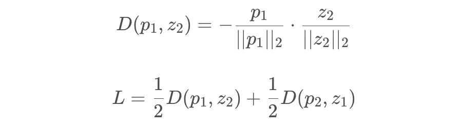 L = D(p1, z2)/2 + D(p2, z1)/2 # loss