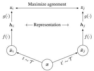 目标是希望同一张图片、不同 augmentation 的结果相近,并互斥其他结果。
