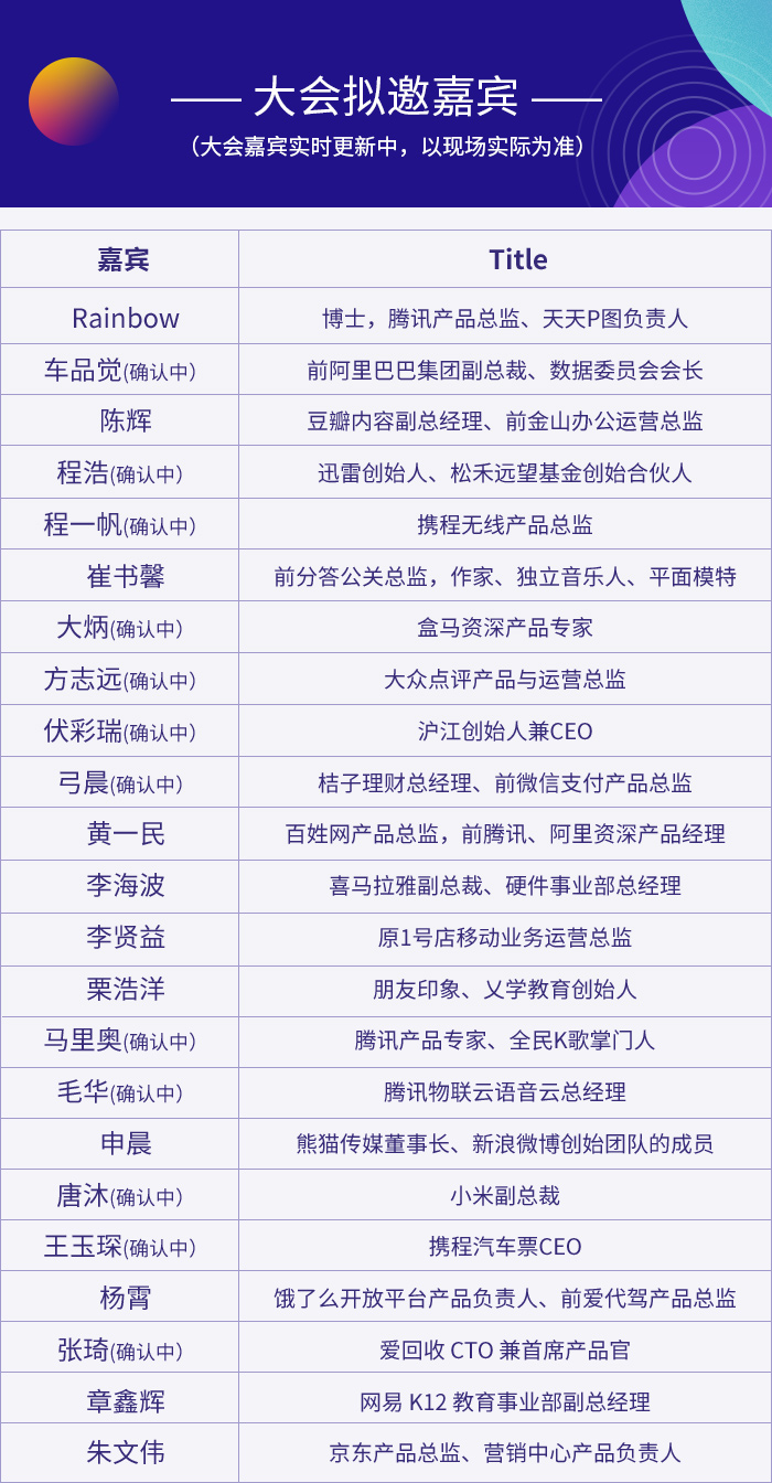 如果你身在外地,也不用担心,本次大会将全程进行在线直播,足不出户,和全国数百万产品经理、运营一起学习,共享知识盛宴。