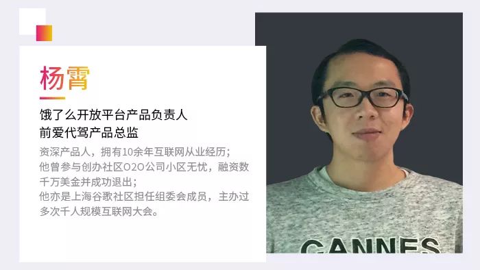 在互联网摸爬滚打10余年,创过业、办过千人大会的饿了么开放平台产品负责人杨霄;