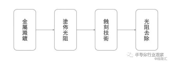 金属溅镀:将欲使用的金属材料均匀洒在晶圆片上,形成一薄膜。
