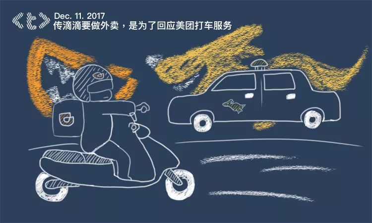 美团曾在今年 2 月尝试在南京推出 “美团打车” 服务,这样的行为似乎让滴滴产生警觉,有消息称,滴滴内部目前正在试水 外卖产品 ,并指出滴滴可能打算以此回应美团在出行领域与滴滴的竞争。不过滴滴方面对此消息不予置评。